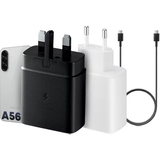 هردو شارژر اورجینال میباشند و قابلیت سوپرفست شارژ را هم ساپورت میکنند تفاوت آنها در برد داخلی آداپتور میباشد که نسخه های اختصاصی Galaxy A56 (سوپر فست 2) حداکثر سرعت شارژ شدن باطری را برای Galaxy A56 ارائه میدهد.