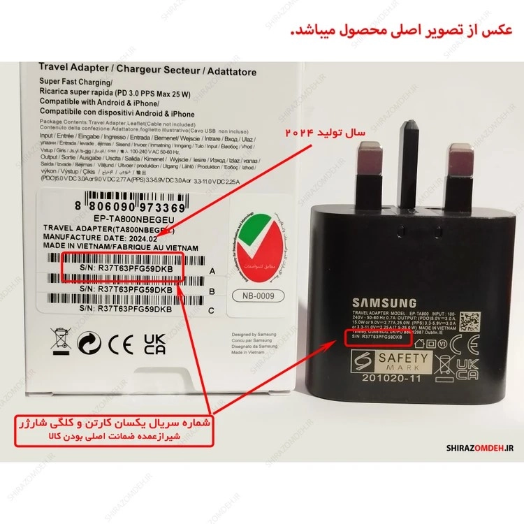 - شماره سریال روی کارتن با بدنه شارژر یکی باشند.